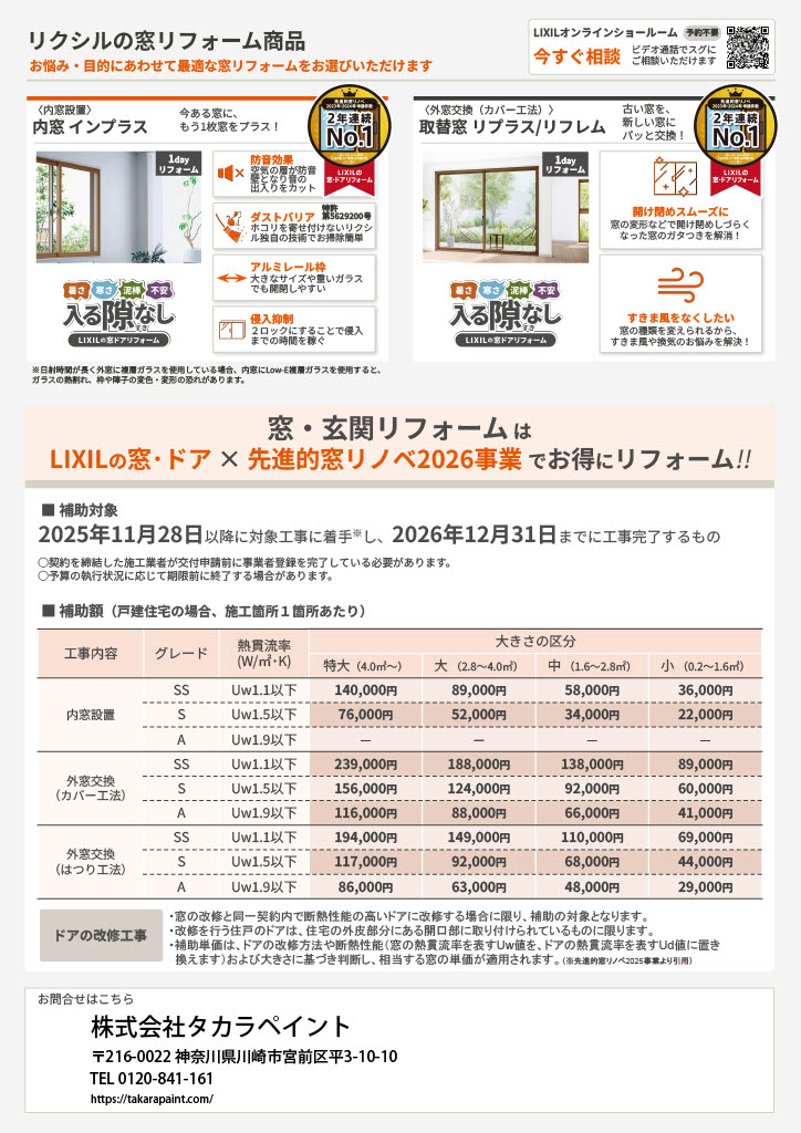 タカラペイントは、川崎市・横浜市・東京都を中心に